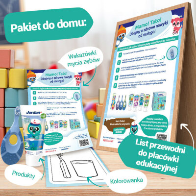 Razem z firmą Orkla Care S.A., producentem marki Jordan, chcemy jeszcze bardziej zachęcić dzieci do regularnej higieny jamy ustnej. Wraz ze swoją grupą lub klasą wykonajcie zadanie rekrutacyjne, a my wyślemy do Was paczkę ze szczoteczkami i pastami od marki Jordan!
